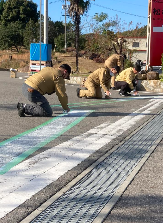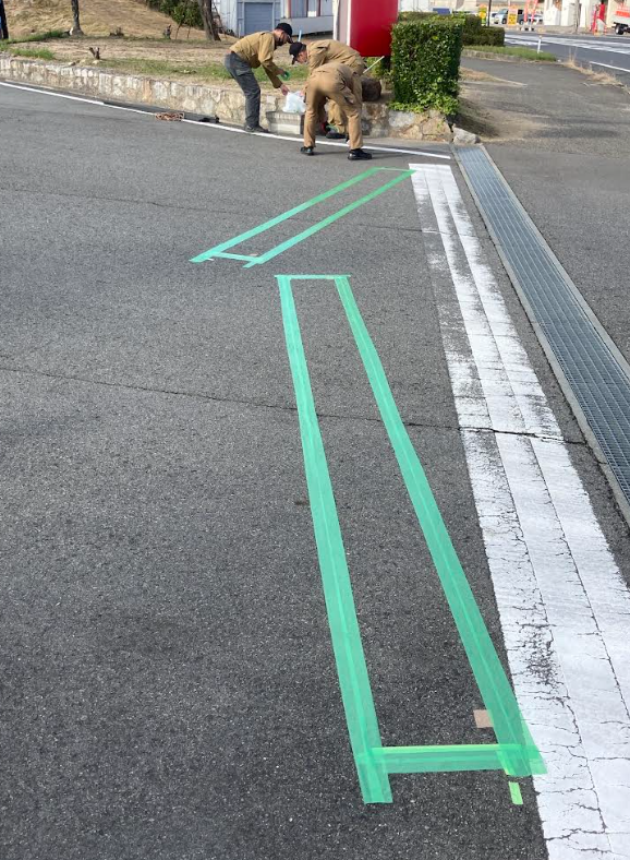 そんな中で、自社車両を愛するドライバーさんからまたまた提案があり、今回の「右左折時の目印セーフティライン」の設置が実現しました。