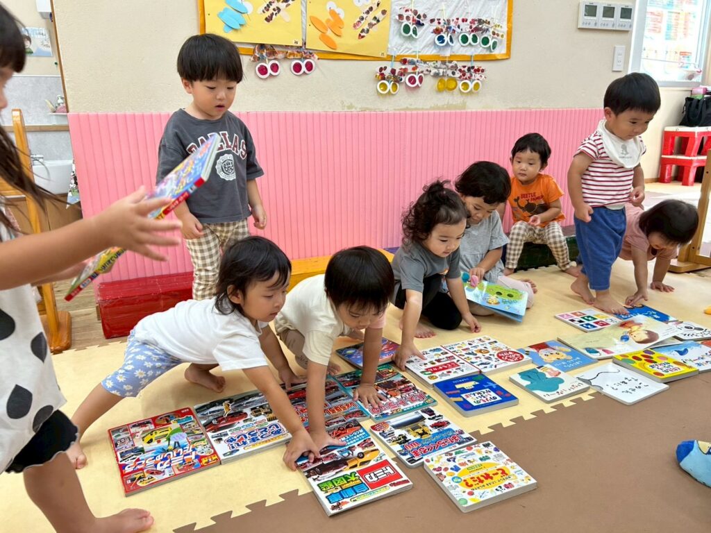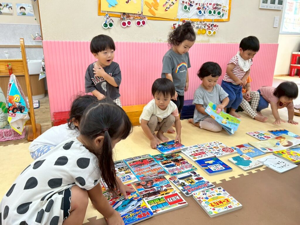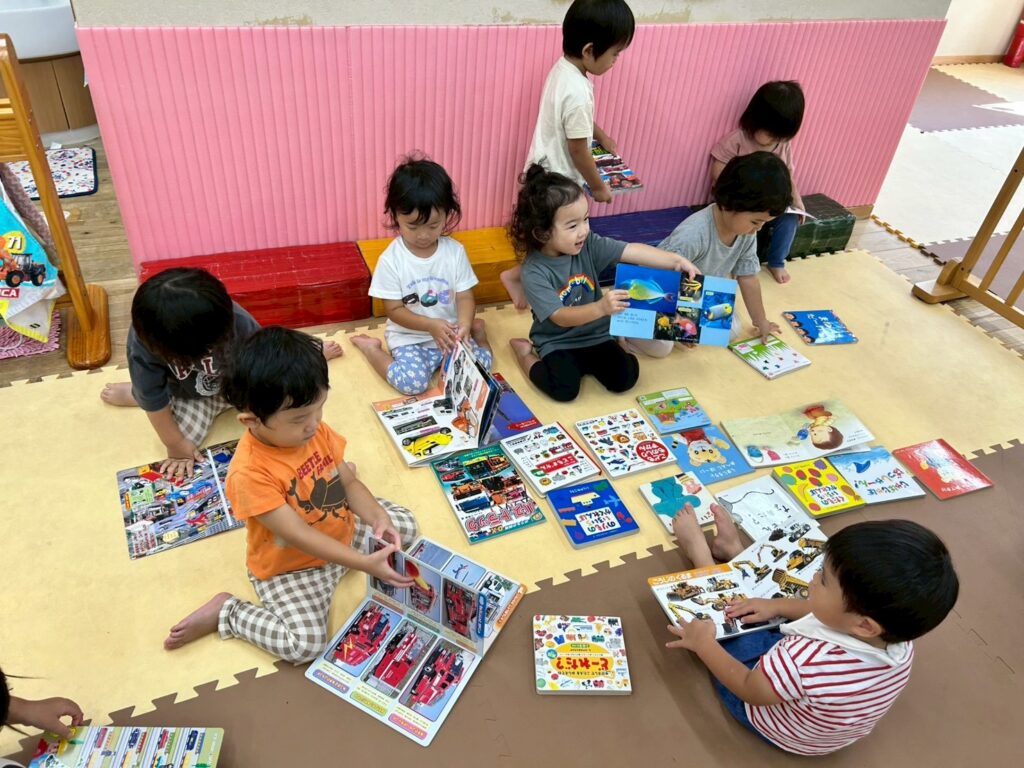いろんな種類の絵本の中でも、トミカや工事用車両を題材とした絵本が人気のようでした。